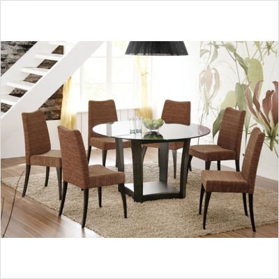 MAR-ALE-5PC-RUB-MOC 4 Dining Chairs Included Modern design dining set offers luxurious feel and style from every angle. Dining set features a special treated glass top and unique pattern upholstery with premium fabrics, designed with unique contemporary looks and offers ultimate comfort and stability. This one of a kind dining set will add a fresh look to any home. Additional chair is also available for purchase. Features: -Set includes dining table and 4 dining chairs. -Combination of Dark Mocha and Autumn Hue finish. -Base construction: Solid wood. -Contemporary style. -Special treated glass top. -Dining chair has premium foam fabric. -Assembly required. -Manufacturer provides one year parts replacement warranty. Specifications: -Table dimensions: 29.92'' H x 54.13'' W x 54.13'' D. -Chair dimensions: 36.22'' H x 20.08'' W x 21.85'' D. -Seat height: 18''.