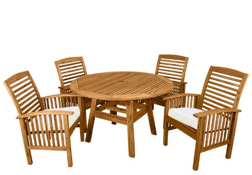 5pc Wood Patio Round Dining Table and Chairs Set with Cushions Review