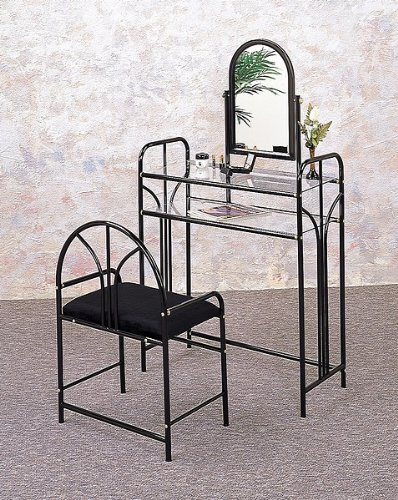 Coaster Vanity Table Mirror and Stool/Bench Set, Glossy Black Finish Metal Review