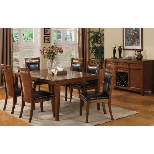 Dining Table W/18"leaf and 6 High Back Leather Seat Side Chairs in Brown Cherry Finish #AD 91528,91529 Review