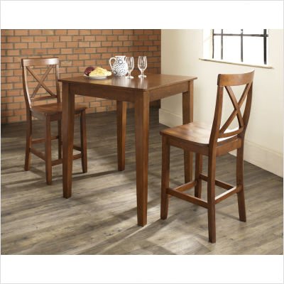Three Piece Pub Dining Set with Tapered Leg Table and X-Back Barstools in Classic Cherry Review
