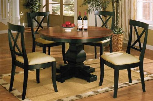 5pc Antique Style Black Finish Wood Round Dining Table & 4 Chairs Set Review