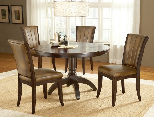 5pc Round Dining Table and Chairs Set in Cherry Finish Review