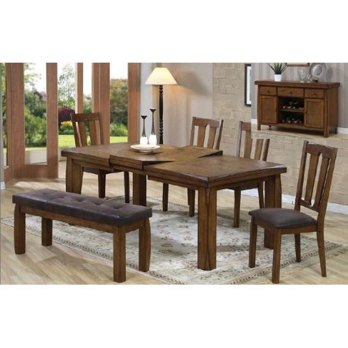 Dining Table with Butterfly Leaf and 4 Dining Chairs and Side Bench in Rusitc Oak Finish #AD 91450,91451,91452 Review