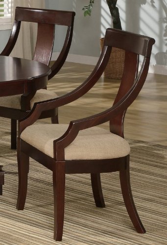 Imperial with sides that Slope down to form arms the high vertical splat backrest so elegantly curved with the warm rich cherry finish while a soft creamy contrast fabric covered seat adds comfort and style will add sophistication to any décor and room in your home or office. Assembly required
